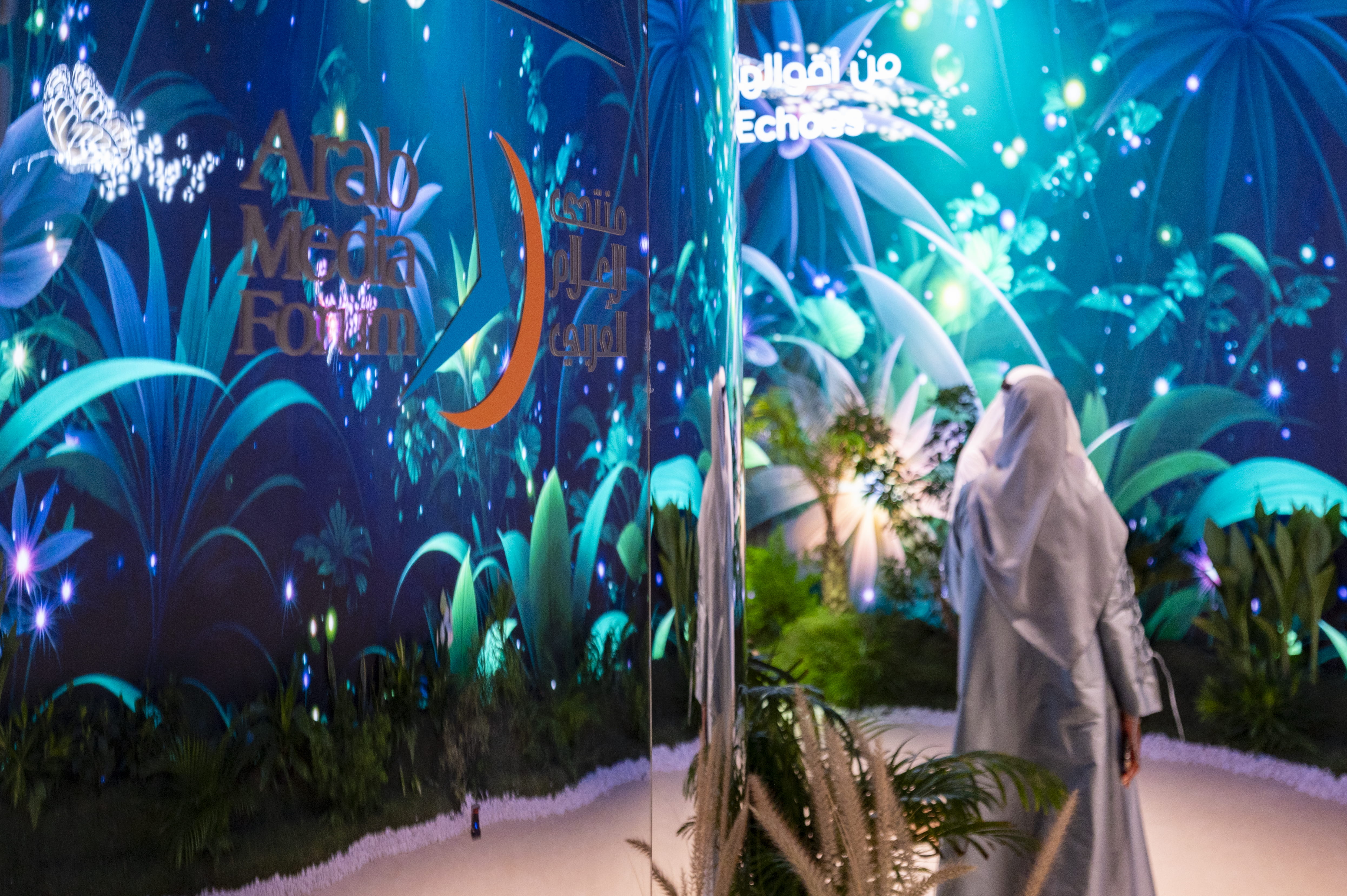 وتضمن المنتدى عملاً تركيبيًا يحتفل بالكلمات الملهمة للصحفيين العرب العظماء الذين لم يعودوا بيننا. استخدم هذا التثبيت الإعلامي إسقاطات زهرية على الأرضية والجدران. يتم أيضًا عرض أسماء الإعلاميين المشهورين على الجدران.